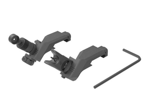 The KAC 45 Degree Offset Folding Micro Sight Kit allows the user to access backup sights for close range engagements even with a primary optic installed. These updated sights feature a robust clamp style base and attaches to the 12 o’clock rail position. When not in use these sights will fold neatly to the right of the rifle’s top rail. The rear sight is adjustable elevation for 200-600m with a finger adjustable front sight.