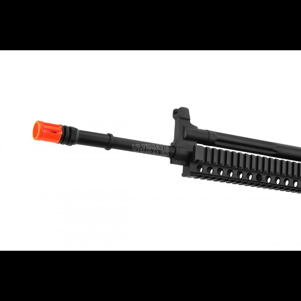 Specifications: Operation: Gas Blowback Build: Metal Receiver, Rail System, Outer Barrel , Buffer Tube, Sights / Polymer Stock, Pistol Grip Firing Modes: Semi-automatic, Full-automatic, w/ Functional Safety Muzzle Velocity: 360 – 380 FPS (w/ 0.2