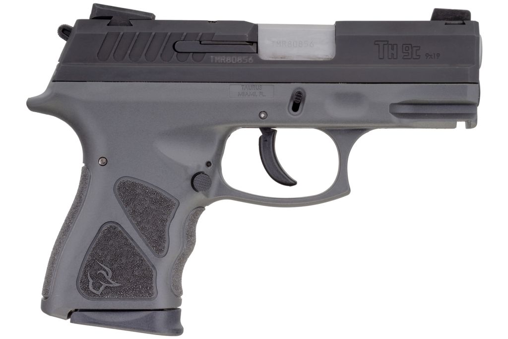 The Taurus® TH series of hammer-fired pistols. Well-equipped, ultra-dependable and chambered in 9mm Luger the TH series is a modern reinvention of the classic hammer-fired SA/DA semi-auto platform. Available in both full-size and compact models, the TH series is built on a polymer frame that boasts finger grooves along the grip, generous stippling panels for a custom fit.