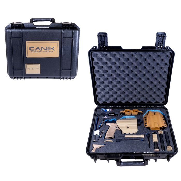 - Includes a hard case, one standard and two extended capacity magazines, magazine E-Z loader, Speed mag-well, extra back straps, one optics base, reversible IWB/OWB holster, OWB threaded barrel and light bearing holster, OWB double magazine holder, MeCanik MO1 optic, Olight MINI light, Canik punch and toolkit, Canik wrench, cleaning kit, gun lock, and manual