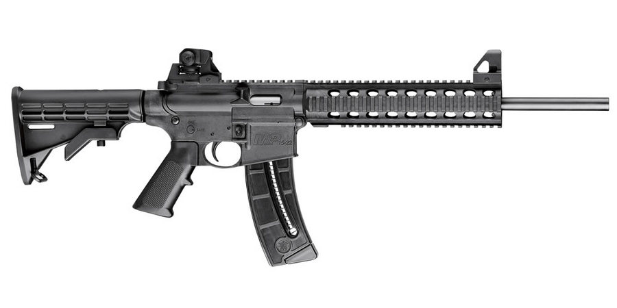 Lightweight high strength polymer upper and lower receivers. Removable 25 round magazine. Adjustable front and rear sights. AR15/M4 style features and controls. A3 style flat top upper receiver. Quad rail handguard accepts all 1913 Mil. Std. rail adaptable accessories. A2 pistol grip – receiver will accept most standard after-market AR15 pistol grips. Six position collapsible stock – receiver extension accepts Mil-Spec carbine stocks. Functioning charging handle. Two position receiver mounted safety. Bolt holds open on empty.