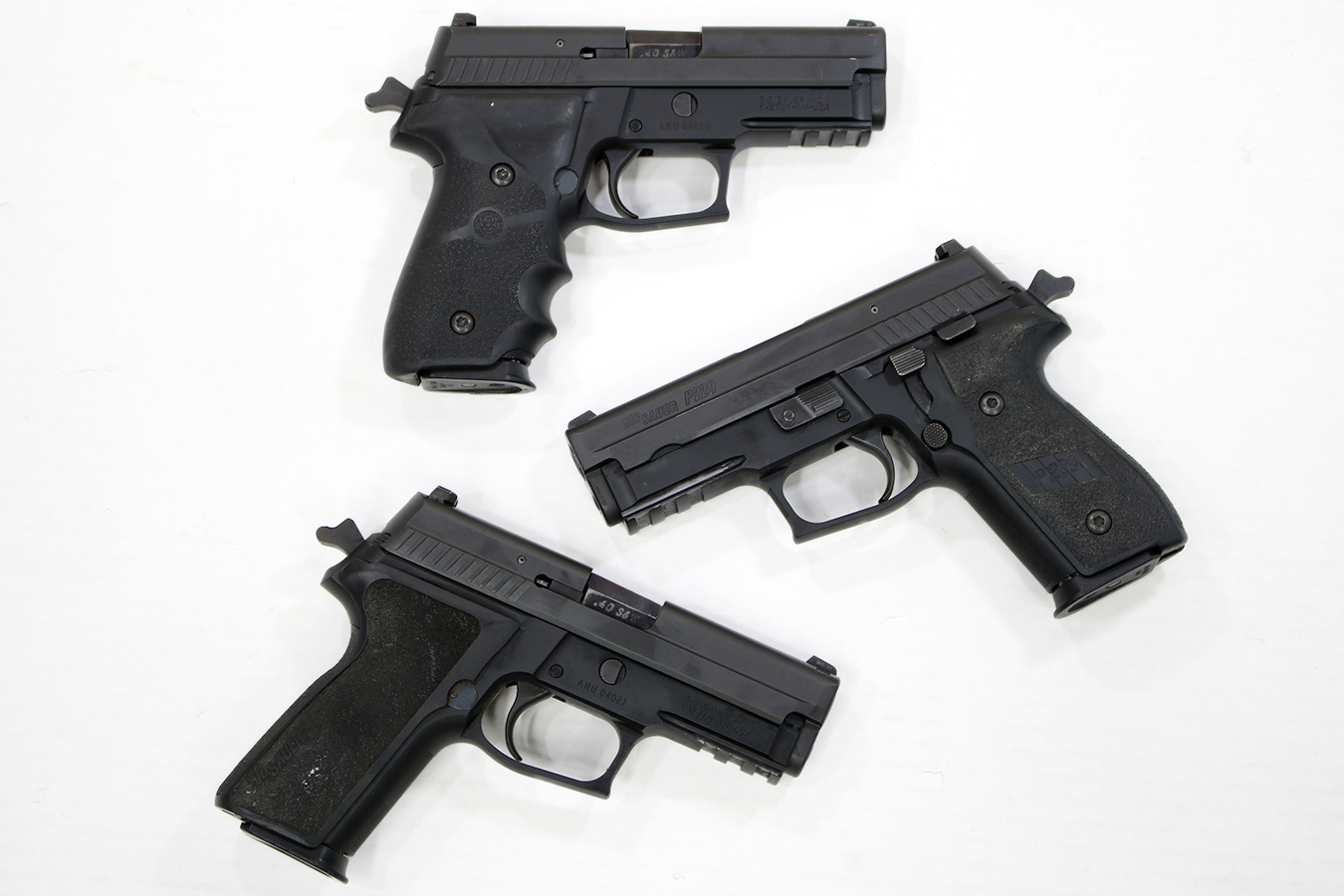 The photos represent the overall condition of these Sig Sauer P229R 40 S&W police trades, which are in good condition. Each pistol comes with two 12-round magazines.