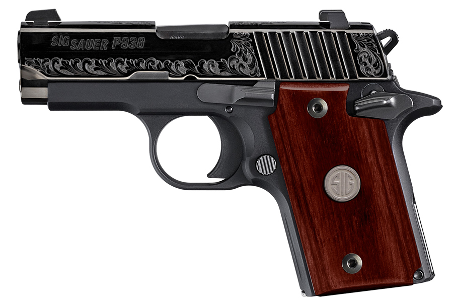 New from Sig Sauer is the P938 Rosewood Engraved Carry Conceal pistol. From the polished engraved Nitron stainless steel slide, to the signature Hogue Rosewood Grips, this larger-than-life P938 is the complete package for your everyday carry needs.