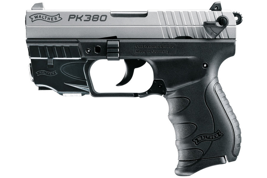 The PK380 just got better! Introducing the Walther PK380 Nickel with Laser. The PK380 is not just good looking. It is small and good looking. That makes the PK380 excellent for concealed carry. Its small grip is ideal for shooters with small hands. The slide is easy to operate, making it a good choice for women. The light weight goes unnoticed in a pocket or purse. Credit Walther Performance Design for another hit. Small is indeed beautiful.
