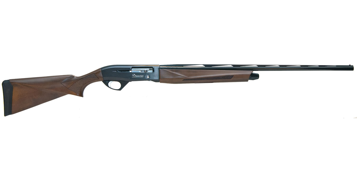 This Pointer 28 Gauge Walnut semi-automatic shotgun features a gas operated cycling system. The top of the receiver is milled with 3/8 inch dovetail for accessory sights.