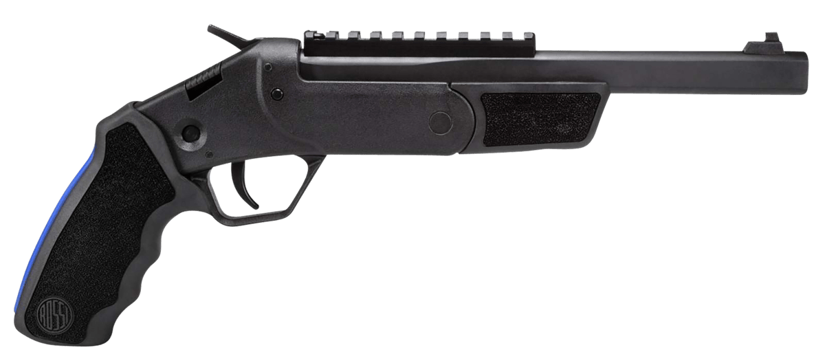 An ideal choice for wilderness protection and survival scenarios, trust the Rossi Single Shot Brawler .410Ga/45Colt pistol. This single-shot features a compact and lightweight design and a redesigned thumbhole and pistol grip that’s great for small-frame shooters. 9-inch Rifled Barrel. Aluminum Picatinny rail with integrated rear sight. Rubber grips