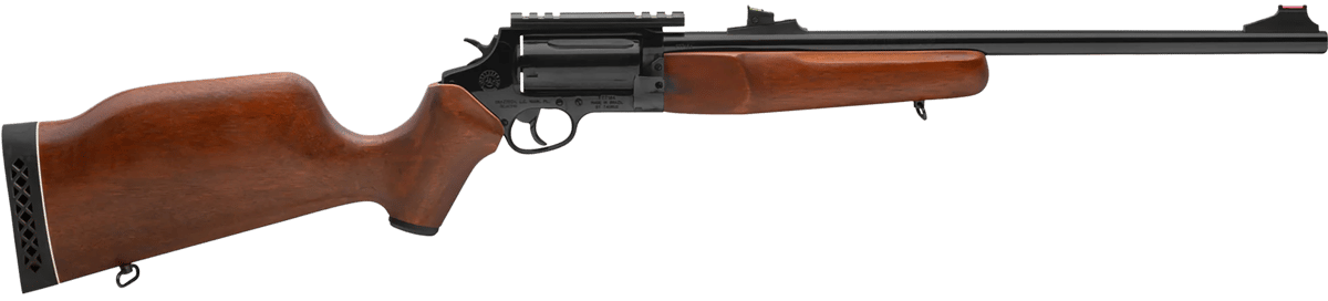 The Rossi Circuit Judge takes the most successful revolver in recent history and extends its range for incredible hunting and shooting with amazing versatility, accuracy, and simplicity. It can fire both 45 Colt ammunition and 3″ or 2.5″ 410 gauge shotshells and without switching barrels. The Circuit Judge comes finished in a beautiful hardwood stock and includes features such as a red fiber optic front sight, a yoke detent, a transfer bar, and the Taurus Security System.