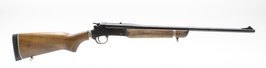 Features: Wood furniture, fixed stock, fixed iron sights, external hammer, safety switch.