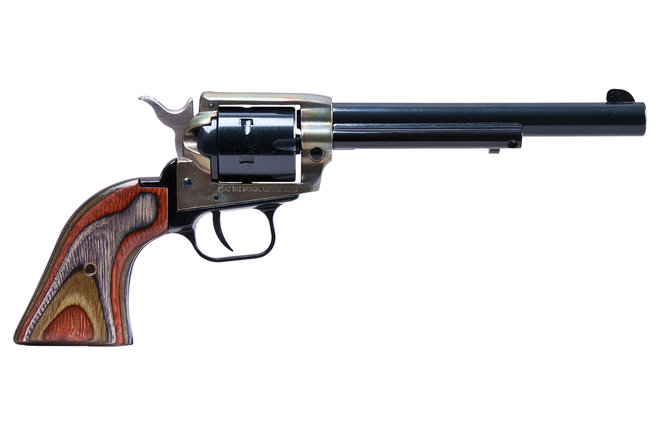 Single action. Maintains Traditional western feel and balance. Machined micro-threaded barrel. Frame mounted hammer block with red indicator. Aluminum alloy frame. Open fixed type sights, notch at rear and bladed front. Lustrous blue or satin finish.