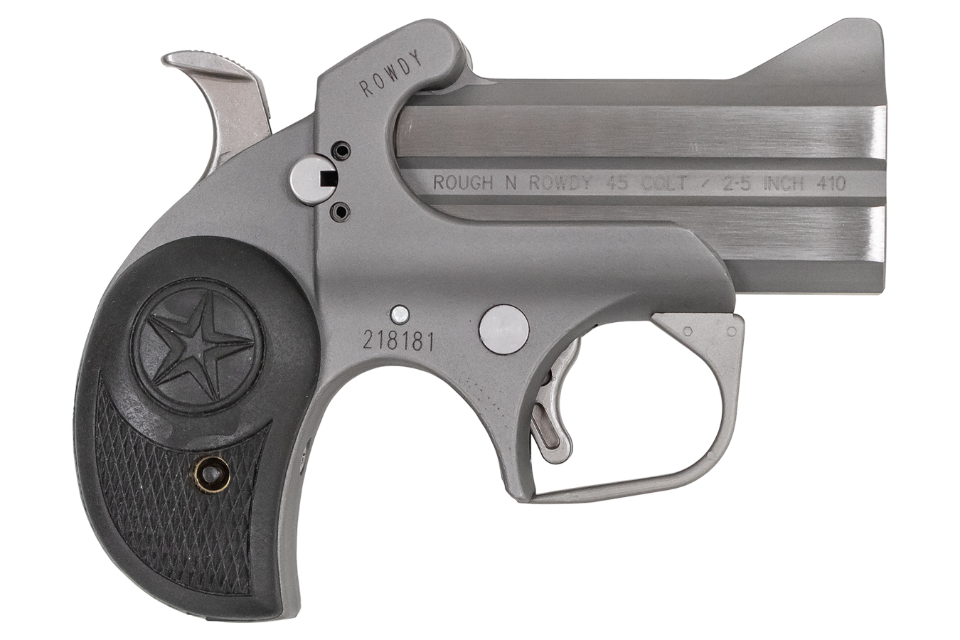 The compact, yet rough-looking, Rowdy is a new type of Bond Arm gun. It’s built with a 3″ barrel chambered for 45/410. Works best with smoothed lined holsters.