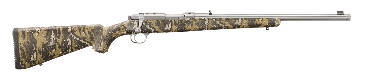 Ruger 77/357 .357 Mag 5 Round 18.50″ Brushed Stainless Desolve Bare Reduced Camo Synthetic Stock