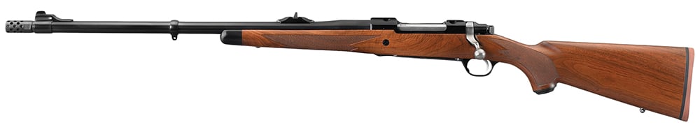 Rugers Hawkeye African Rifle features a LC6 trigger that has a smooth crisp performance right out of the box for increased accuracy on the range or in the field. Its nonrotating Mausertype controlled round feed extractor is the most positive case extraction system ever invented and features a fixed bladetype ejector that positively ejects the empty cases as the bolt is moved fully rearward. The hinged solidsteel floorplate makes for easy unloading without having to chamber each cartridge. Its ergonomically pleasing American walnut stock has rounded contours along the barrel on the bottom of the stock and on top of the pistol grip and wraparound checkering on grip and forend. The cold hammerforged barrel results in ultraprecise rifling that provides exceptional accuracy longevity and easy cleaning and has shallow expressstyle” windageadjustable “V” notch rear sight and large white bead front sight for instant target acquisition.”