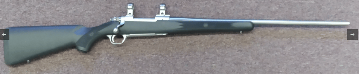Available – this stainless steel, synthetic stocked Ruger model 77 MKII bolt action rifle. Chambered in .223 (or 5.56) it appears unfired. Chamber and bore are perfect – examined with bore scope. Pristine and clean inside and out. Rifle ships with Ruger factory 1″ stainless rings which are adequate for up to a 50mm objective scope.