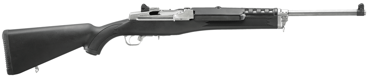 Action Auto – Caliber 7.62×39 – Capacity 20 – Barrel Length 18.5 – Front Sight Blade – Rear Sight Adjustable – Grooves 6 – Twist 110 RH – Stock Black Synthetic – Finish Matte – Material Stainless Steel – Overall Length 37.5 – Length of Pull 13 – Weight 6.7 lbs. – For decades Ruger Mini-14 rifles and Mini Thirty rifles have been the choice for applications ranging from the farm and ranch to the deep woods to personal defense. Their short barrels and overall short length make them favorites in any application where maneuverability and ease of handling are priorities. With a variety of configurations there is a Mini-14 or Mini Thirty to meet any demand. Specifically designed for mounting todays scopes or other optical sighting systems these rifles include a side ejection to clear the top mounted scope and a patented recoil buffer which protects the scope from damage or shifting the point of impact as the semi-automatic action cycles. This Mini Thirty Rifle is chambered in 7.62 x 39mm and has proven itself as the ideal autoloader for deer-size game. It features a black synthetic stock 18.5 barrel with a stainless steel finish and has a 2-round capacity.