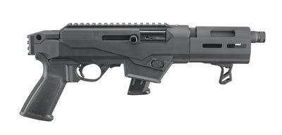 The Ruger PC Carbine has been a popular choice for rifle enthusiasts since it was introduced a few years ago. Now, there’s a choice for fans of a tactical pistol instead – the Ruger PC Charger. Featuring a threaded barrel, Picatinny rail on the top and back, and Glock and SR-Series magazine compatibility, this firearm will be your next favorite choice on the range or at a competition. Grab your Ruger PC Charger from GrabAGun today for the best price online!Ruger PC Charger State Compliant Features This model ships with a 10-round magazine for consumers in those states which limit magazine capacity. Glass-filled polymer chassis system allows for the mounting of standard AR grips. Integrated rear 7075-T6 aluminum picatinny rail allows for the mounting of Picatinny-style rail brace mounts. Chassis system features a flared magwell for improved magazine reloading capabilities as well as integrated rear-mounted QD cups for the quick connection of QD cup capable slings. CNC-milled handguard, that is Type III hard-coat anodized aluminum for maximum durability, incorporates the traditional takedown block and features Magpul M-LOK-compatible slots at the 3, 6, and 9 o’clock positions for easy mounting of M-LOK-compatible rails and accessories 6 o’clock position of the CNC-milled handguard features a factory-installed handstop for secure support hand placement. Interchangeable magazine wells for use of common Ruger and Glock magazines. Ships with SR-Series and Security-9 pistol magazine well installed and an additional magazine well accepting Glock magazines is included. Easy takedown enables quick separation of the barrel/forend assembly from the action for ease of transportation and storage. Takedown is as simple as locking the bolt back and verifying that the pistol is unloaded, pushing a recessed lever, twisting the subassemblies and pulling them apart. Dead blow action features a custom tungsten dead blow weight that shortens bolt travel and reduces felt recoil and muzzle rise. Bolt is machined from heat treated, chrome-moly steel to ensure strength, structural integrity and durability. Reversible magazine release and reversible charging handle to support left- or right-handed use or one-handed control manipulation while maintaining a proper firing grip. Cold hammer-forged, chrome-moly steel barrel with ultra-precise rifling provides exceptional accuracy and longevity. The heavy-contour barrel provides consistent accuracy. Threaded barrel with included thread protector allows for use of standard muzzle accessories. Light, crisp trigger pull with minimal overtravel and positive reset utilizing proven 10/22 trigger components. CNC-machined from an aerospace grade 7075-T6 aluminum billet, the receiver includes an integrated Picatinny-style rail and is Type III hard-coat anodized for maximum durability. Ergonomic pistol grip features an extended trigger reach for more precise trigger control. Also includes: one, SR-Series pistol magazine; hex wrenches for disassembly of the chassis system and pistol, and charging handle removal. NOTE: Older Glock magazines that feature only one magazine latch slot may still be used with the PC Charger, but the magazine release button must remain on the left side of the pistol as shipped from the factory. The magazine release button should not be reversed when using this type of magazine as the magazine will not properly lock into the magazine well. Early versions of Glock-brand magazines with a “U” shaped notch at the rear of the magazine feed lips will not function in the PC Charger. NOTE: The receiver-mounted, Picatinny-style rail is designed to accommodate most optics and optic mounts intended for use with Picatinny/ MIL-STD 1913 rails. However, due to reduced clearance between the top of the receiver and the bottom of the optics rail, optics and optic mounts that extend more than .275″ below the top of the rail may not fit the PC Charger. Ensure that the optic or optic mount you intend to use does not extend more than .275″ below the top of the Picatinny-style rail when installed. Ruger PC Charger State Compliant Specifications Manufacturer: Ruger Family: PC Carbine Series Model: PC Charger Type: Semi-Auto Pistol Action: Semi-Auto Caliber: 9mm Finish: Matte Finish Type: Black Grips: Black Polymer Barrel: 6.5″ Overall Length: 16.5″ Rate-of-Twist: 1-in-10″ Capacity: 10 plus 1 # Of Magazines: 1 Mag Description: 17 Rd. SR-Series Pistol Mag Sights: None Thread Pattern: 1/2×28 Special: Threaded Barrel Model Weight: 5.2 lbs. Additional Info: M-LOK Compatible Handguard Additional Info: Ships w/ 2 Changeable Magwells Additional Info: State Compliant Model Mfg Model No: 29101 UPC: 736676291014