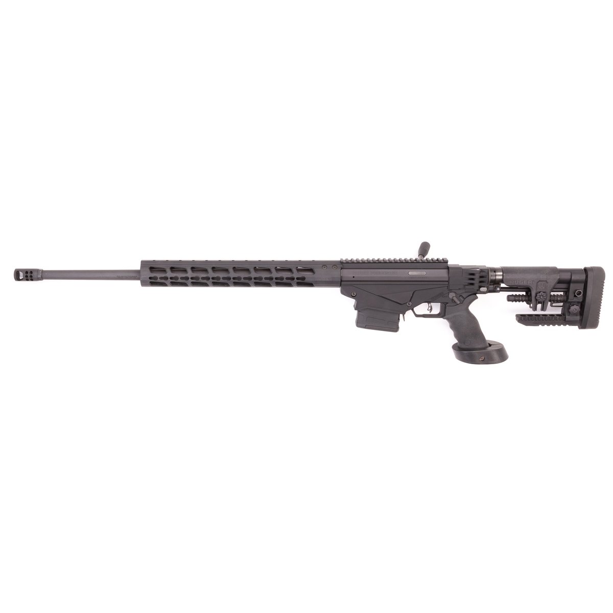 This Ruger rifle features one 10-round magazine, a folding stock, an Ergo pistol grip with a palm shelf, a Key-Mod handguard and a muzzle brake.