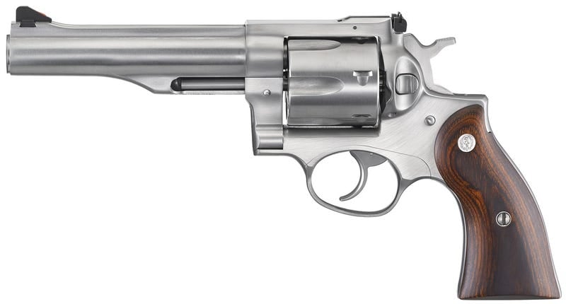 For Big Game Hunting, Think Big Bore Revolvers. The Ruger Redhawk revolver was Ruger’s first double-action revolver specifically designed for the powerful 357 Magnum cartridge. It embodies many advanced features such as a triple-locking cylinder, a unique single spring mechanism for relatively lighter trigger pull, replaceable front sights and adjustable rear sights, with an all-stainless steel construction.