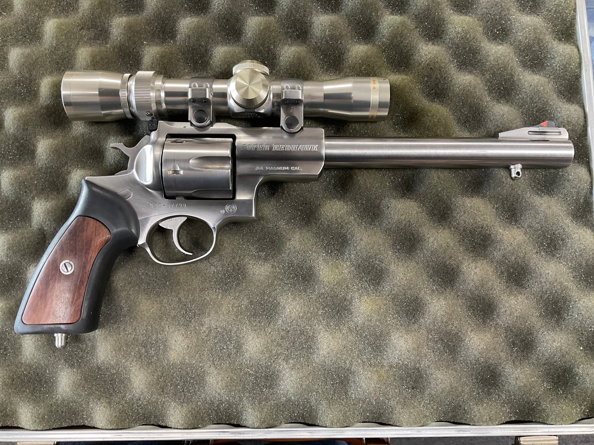Ruger Super Redhawk 44mag with Nikon scope. Firearm comes in a hard case.
