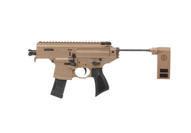 The MPX Copperhead features a monolithic Elite Series Cerakote® finish upper receiver, with an integrated stock knuckle lower, and a 3.5” barrel with integrated muzzle brake. The MPX Copperhead comes equipped with the new SIG SAUER Pivoting Contour Brace (PCB) giving pistol users a brace that easily adapts to the movement of the shooter’s arm with a patented swivel operation for perfect placement, and can be rapidly deployed.