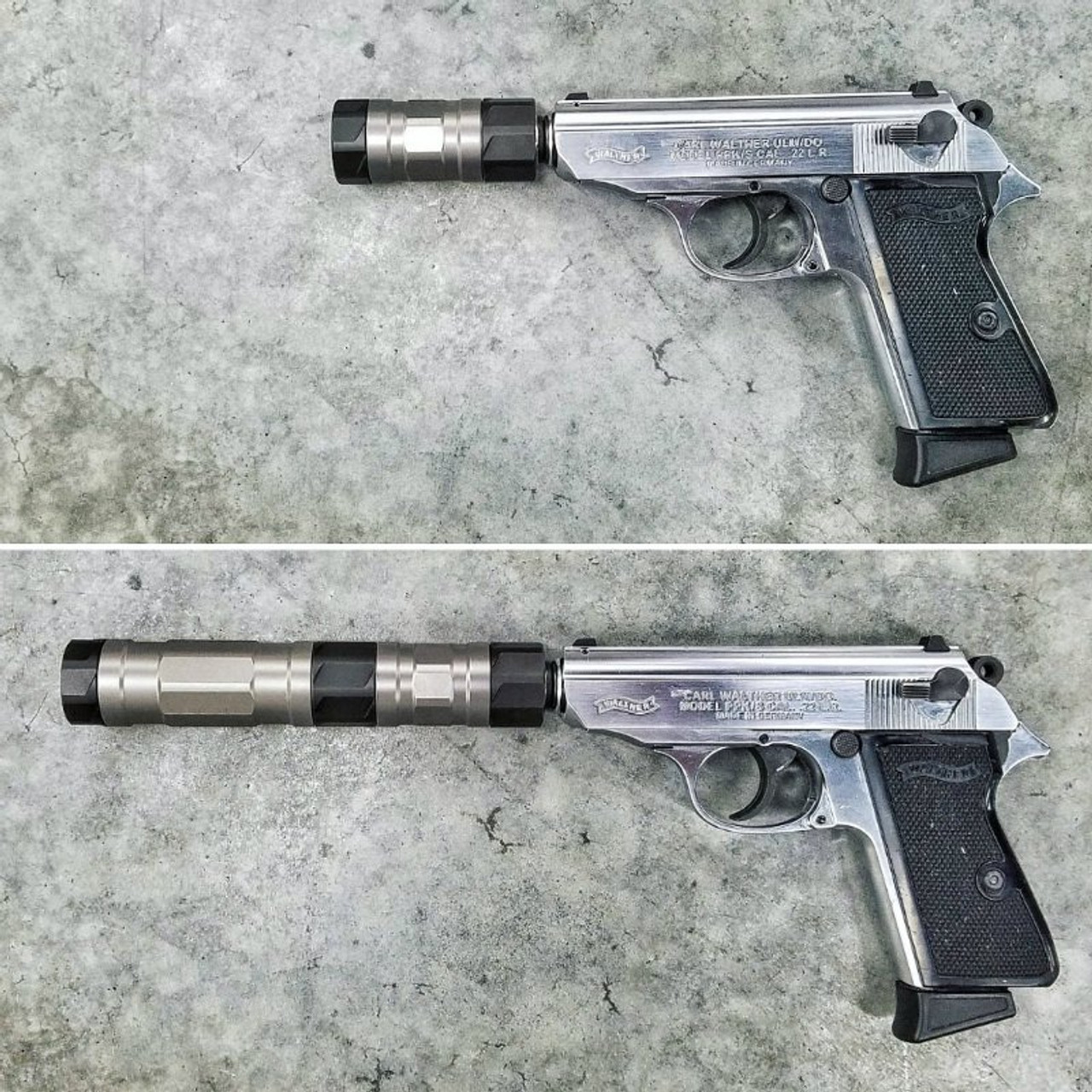 Inspired by technology used in rocket and jet propulsion, when oriented in one direction the front section exhibits the most competitive sound reduction on the market for pistols, but when the orientation is flipped the result is unprecedented sound reduction on rifles.