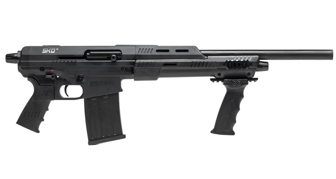 Forend: Composite material with slots for MOE and bolt on rails; INCLUDES forward vertical grip Brand new SKO Shorty 12 Gauge Semi-Automatic with 18-Inch Barrel