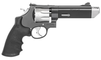 The Smith & Wesson 627 Performance Center delivers a durable and reliable revolver design with great accuracy. It comes chambered in 357 Magnum with a 5 inch barrel. Features include a compensator, adjustable rear sight, and an 8 round capacity. Get this 357 Mag revolver for the best price online from GrabAGun today!627 Performance Center Features Smith & Wesson’s Performance Center guns are the ultimate expression of old-world craftsmanship blended with modern technology. The Model 627 V-Comp features a chrome hammer, trigger, and trigger stop. It also has a PC tuned action. This model has a stainless steel barrel, cylinder, and a two-tone frame. It includes synthetic grip and a removable barrel compensator. 627 Performance Center Specifications Brand: Smith & Wesson Category: Revolvers Series: Model 627 Caliber: 38 S&W Spl +P Model: Performance Center Capacity: 8rd Action: SA / DA Frame Finish: Black OAL: 11″ Frame Material: Stainless Steel Sights: Orange Dovetail Front, Adjustable Rear Barrel Finish: Black Frame Size: Large (N-Frame) Grips: Finger Grooved Black Polymer Cylinder Material: Stainless Steel Cylinder Finish: Stainless Steel Includes: Moon Clips Safety: Internal Lock Barrel Description: 5″ Compensated, Threaded Barrel Length: 5″ Max Capacity: 8 Weight: 46.80 oz Frame Description: Black Stainless Steel Hammer Style: Exposed