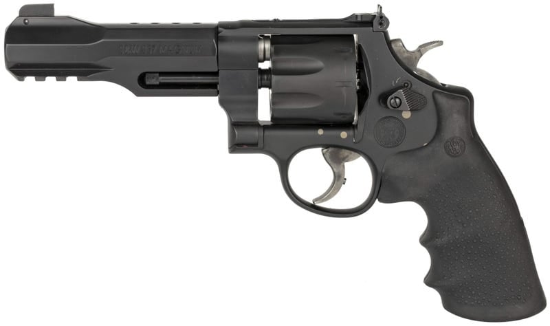 The Smith and Wesson M&P Performance Center R8 revolver combines old-world hand craftsmanship with modern technology to create extremely accurate, high performance models designed for the most demanding shooters. The M&P Performance Center R8 Model features a PC trigger and trigger Stop, PC tuned action, Scandium alloy frame with a stainless steel cylinder. This Smith and Wesson has an integral accessory Picatinny style rail and an interchangeable front sight with an adjustable rear v-notch sight.