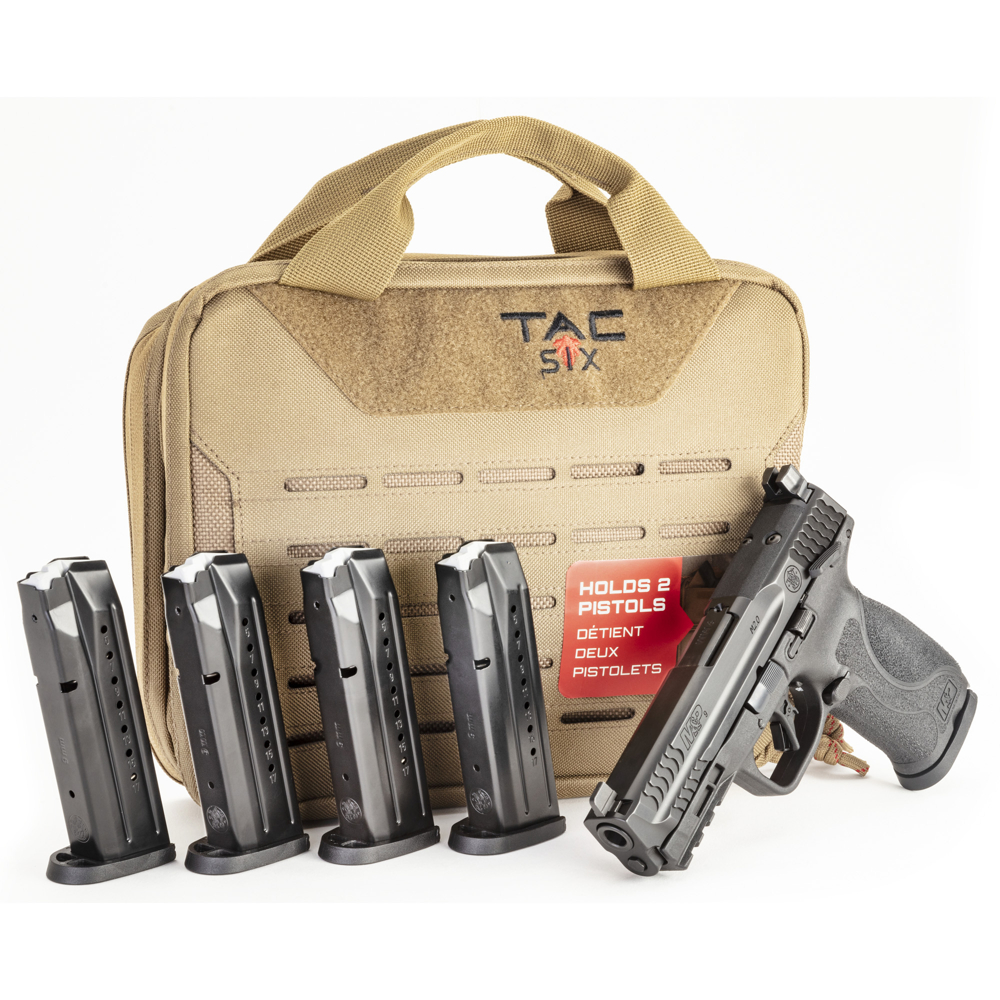The Smith & Wesson M&P9 M2.0 is a high-quality, striker-fired pistol designed for performance and reliability. This semi-automatic handgun features a polymer frame and comes in a full-size design. It is chambered in 9mm and has a 4.25″ barrel length. The pistol comes with an Armornite finish in black color, optic height sights, optics ready, thumb safety, and a flat face trigger with integrated trigger safety. It has a capacity of 17 rounds and comes with 5 magazines and an FDE Tac Six carrying case.