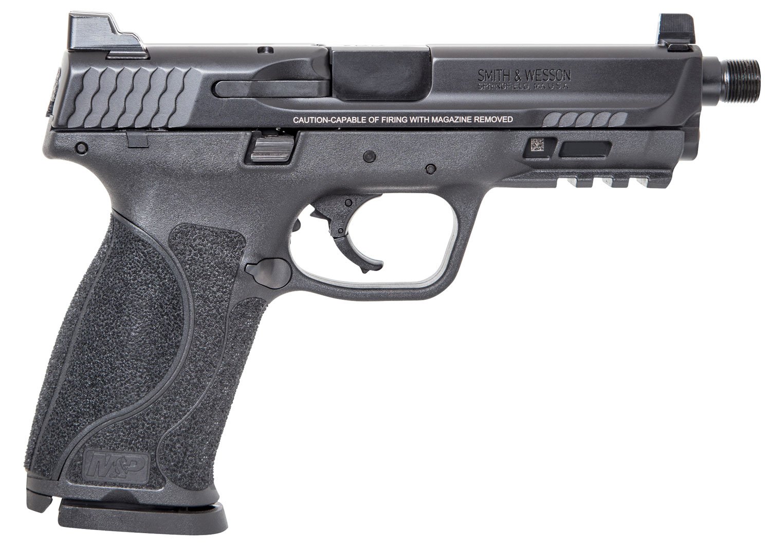The Smith & Wesson M&P9 M2.0 TB features a reinforced polymer chassis, ambidextrous controls, and proven safety features. Designed with input from military and law enforcement, the M&P series is known for its reliability in critical situations. The M&P M2.0 boasts an extended stainless-steel chassis, textured grip, and interchangeable palmswell inserts for a customized feel. This model comes with a 4.6″ threaded barrel, black finish, and one 17-round magazine.