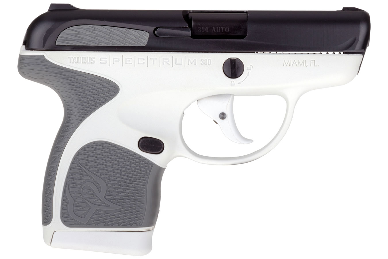 Taurus Spectrum .380 Auto – White Frame / Black Slide and Gray Grips