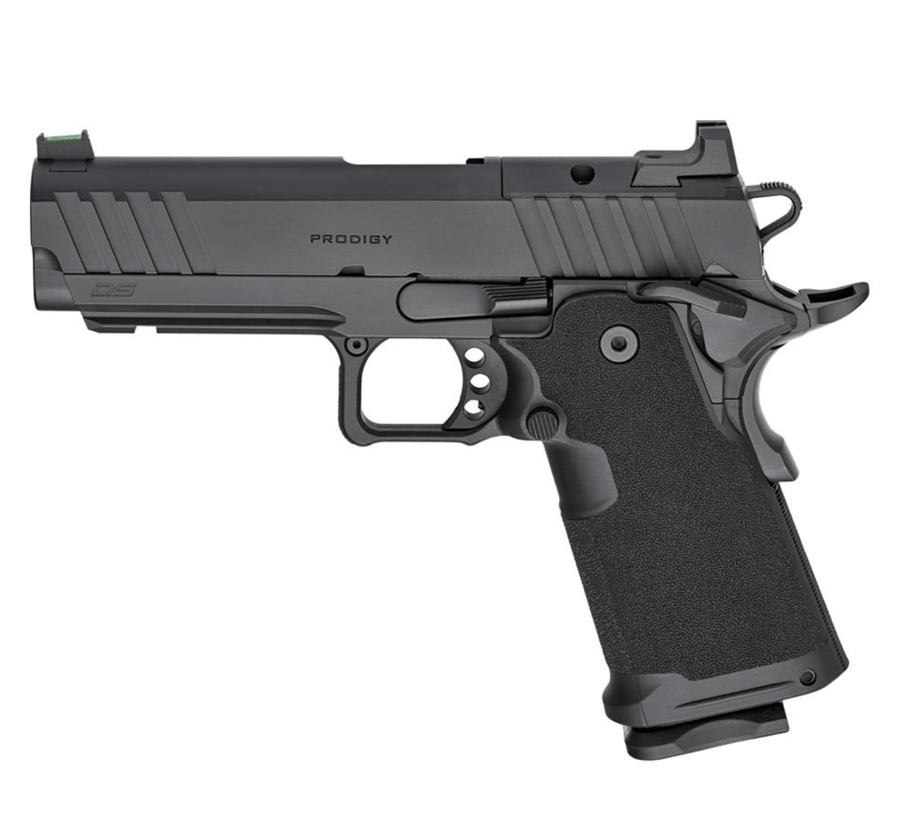 The Prodigy from Springfield Armory� takes the proven 1911 platform and enhances it with double-stack capacity and a performance-driven feature set. Reconfigured around a double-stack magazine, the Prodigy�s polymer grip module mounts to its forged steel frame offering capacities of 17+1 and 20+1. Optics ready with an ambidextrous safety and Picatinny rail the Prodigy combines the most beloved characteristics of the 1911 with modern capacity for unrivaled performance.