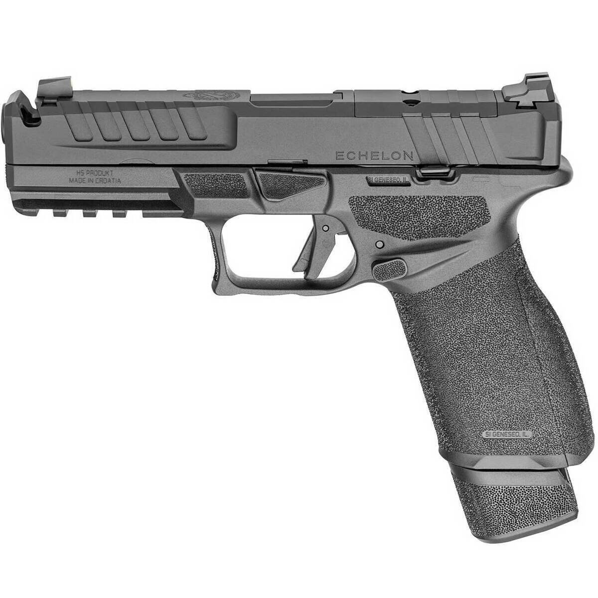 Springfield Armory Echelon Comp Gear Up Package 9mm Luger 4.5in Black Melonite Pistol – 20+1 Rounds – Built around a robust stainless steel chassis, the Echelon Comp 9mm handgun features an integral compensator with a single port on the hammer-forged slide and barrel, reducing muzzle rise for faster, more accurate follow-up shots. The revolutionary optics mounting system offers unparalleled adaptability with today’s most respected red dot sights, while fully ambidextrous controls and interchangeable backstraps accommodate a broad range of shooters. The Echelon Comp includes both a 17 Round and a 20 Round Magazine for added versatility. Perfect for competitive shooting or personal defense. With an 8in overall length and a 4.5in barrel featuring a 1:10in twist rate, it offers improved accuracy and manageable recoil, thanks to its integral compensator. The black Melonite-finished polymer frame provides durability while keeping the pistol lightweight at 23.9oz. For quick target acquisition, the Echelon Comp features a front sight with luminescence and a tactical rack U-Dot rear sight. Also comes with a Springfield Range Bag for easy transport. Additionally, the CTC CT-1500 Red Dot Optic and VIS Optic Mounting System allow for enhanced aiming precision and the ability to mount additional optics. Whether you’re a competitive shooter or looking for a reliable all-around pistol, the Echelon Comp delivers exceptional performance and adaptability.