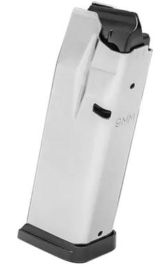 The Springfield Armory Hellcat Magazine for the Springfield Hellcat Pro is a great spare magazine. Features 15 rounds capacity in 9mm caliber. It’s always a smart idea to keep a couple of extra magazines around minimizing reloading time and keeping you in the action. Get this Hellcat Magazine and other mags for sale online at GrabAGun today!Springfield Armory Hellcat Magazine Features This replacement Springfield Hellcat Pro 9mm Luger magazine is a factory original from Springfield Armory. Factory replacement parts are manufactured to the exact same specifications and tolerances and use the same manufacturing materials as the original parts which guarantees excellent fit and reliable operation. The magazine for the Hellcat Pro features stainless steel construction for durability, numbered round count witness holes and a polymer follower. The magazine features a flush fitting bottom that mates perfectly to your Hellcat Pro frame. Keeping a few extra factory magazines around is never a bad idea; extra magazines save loading time at the range and also serve as a backup for those days when you simply cannot remember where you put your primary magazine. Springfield Armory Hellcat Magazine Specifications Springfield Magazine 9MM 15 Rounds Fits Hellcat Pro Silver Stainless Steel Body with Black Base Plate