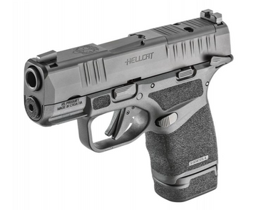 The amazing Springfield Hellcat OSP MS ultra-compact striker fired pistol chambered in 9mm leads the micro compact class with a patented magazine design boasting an incredible 11+1 and 13+1 capacity with the included extended magazine. Weighing in at just 18.3 oz. empty and just 1” wide, the Hellcat brings full sized capacity to an everyday carry firearm. If you are a part of the red dot revolution the Springfield Hellcat OSP (Optical Sight Pistol) has you covered with a milled slide that allows the smallest red dot sights available to be mounted directly to the slide. The outstanding U dot system remains in place to provide a co witness sight picture. But the innovation doesn’t stop there. The striker fired Hellcat features an adaptive grip texture that grabs your skin the tighter you hold the firearm using taller flat topped pyramids to provide a smooth outer surface while shorter sharp pyramid shapes grab your hand the tighter you squeeze the grip. Fast target acquisition is important in a defensive firearm and Springfield delivers with a bright U-Notch system featuring a tactical rack rear and tritium front sight. Forward and top rear serrations provide positive grip for slide manipulation while a tactile loaded chamber indicator and top facing chamber peephole ensure that you always know the state of your firearm at a glance or a touch. This model features a frame mounted ambidextrous safety.