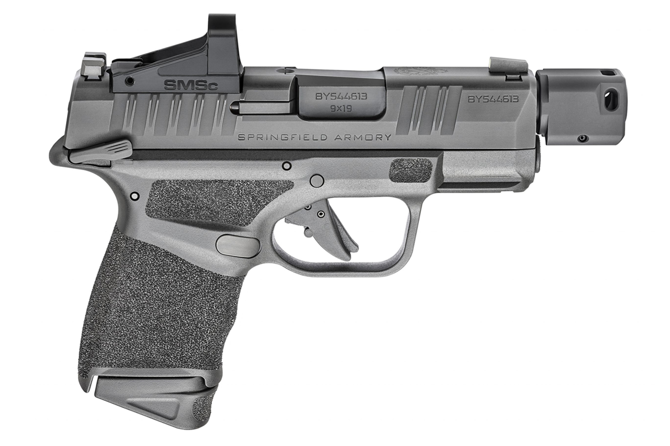 The springfield hellcat rdp 9mm micro-compact pistol with smsc red dot is built around a 3.7-inch threaded barrel with a proprietary compensator that reduces felt recoil by approximately 30 percent. The slide is machined from billet steel with a Melonite finish for corrosion resistance, and the frame uses a high-performance polymer with an integral rail for accessories. The included Shield SMSc red dot sight is pre-mounted and co-witnesses with the factory night sights, providing a redundant sighting system.