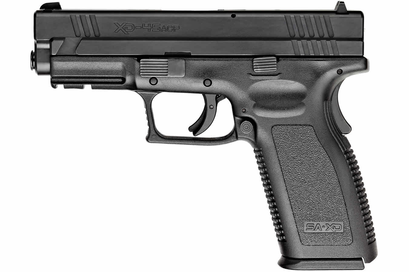 The springfield xd .45 acp service model black essentials package is built around a 4-inch hammer-forged barrel and a polymer frame with an integral grip safety. The black Melonite finish on the slide resists corrosion and wear, while the fiber optic front sight and low-profile combat rear sight enable rapid target acquisition. The Essentials Package simplifies ownership by including the core accessories needed for carry and storage.