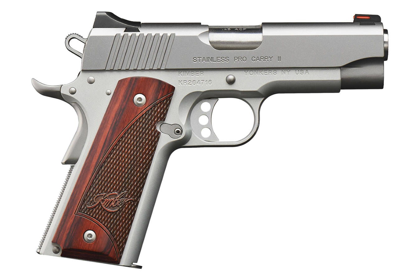 The accuracy, dependability and renowned Kimber features of the Stainless Pro Carry II .45 ACP set the standard against which all other 1911 brands and models are measured. Their legendary performance has made Kimber the world’s largest producer of 1911 pistols.