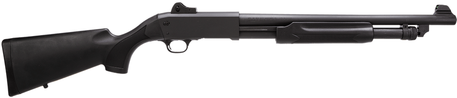 Action Pump – Gauge 12 – Capacity 5 – Finish Matte Black – Stock Black Synthetic – Sights Ghost Ring – Barrel Length 18.5 – Overall Length 38.25 – Weight 6.85 lb