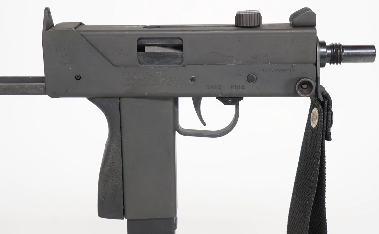 This gun is the SWD M11-A1 small frame variant of the M11 A1 Submachine gun. This is the last and best variation of the small frame macs. The cyclie rate is 1800 RPM(rounds per minute). Super fast ! Unloads a 30 round magazine in 1 second ! This gun fireds the 380 acp round from the same zytel magazine as it’s big brother the SWD M11.