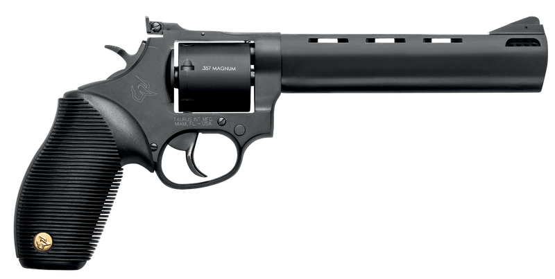 Taurus 692 Tracker revolver is an ideal companion for personal and home defense as well as simply shooting more rounds at the range. It offers the ability to change the caliber from 38 Special P / 357 Magnum, to 9mm Luger with a simple swap of the cylinder. The ported barrel manages recoil for quicker target re-acquisition. The 692 Tracker revolver has fixed front/adjustable rear sights, spurred hammer and Taurus’ Ribber Grip, and a transfer bar safety. Included are Stellar clips. This Taurus model has a 6.5″ carbon steel barrel and matte black metal finish.