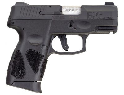 The Taurus G2C Pistol delivers high performance, reliability, and accuracy. It comes chambered in .40 SW with a 3.2 inch barrel. Features include fixed sights, a polymer frame, a black carbon steel slide, and two 10 round magazines. Get the Taurus G2C 40 for sale online from GrabAGun today!Taurus G2C Pistol Features The compact profile combined with magazine contoured grip extension delivers a solid, comfortable hold for small- or large-hand shooters. Operation of the G2C is straightforward, thanks to a striker-fire, double-action trigger system that includes restrike capability. A manual, external safety is located conveniently above the thumb for quick manipulation in stressful conditions. The reversible magazine release is also ergonomically positioned for rapid, one-hand mag drops during tactical mag changes. Integrated into the G2C frame is a Mil-STD 1913 Picatinny rail. The carbon steel slide features slide contours which blend with the frame to promote a smooth, snag-free draw and re-holster. Precision-cut slide serrations also provide a no-slip grip when charging the pistol. Topping the slide is a fixed white dot front sight and a dual white dot rear sight with elevation and windage adjustment. Taurus G2C Pistol Specifications Action Double Caliber 40 S&W Barrel Length 3.2″ Capacity 10 plus 1 Magazines 2 / 10 rd. Safety Manual Grips Black Polymer Sights 3-Dot Fixed Frame Finish Black Frame Material Polymer Slide Black Carbon Steel