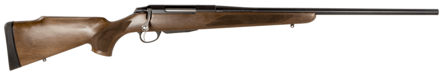 The Tikka T3x Forest is a bolt action centerfire rifle which permits use of variable scopes that require higher mounts. It features an oil-finished walnut stock with rollover cheekpiece and recoil pad blued receiver with screw placements for mounting a Picatinny rail blued barrel with hand-cut crowned muzzle adjustable single-stage trigger two-stage safety two-lug bolt with 75 lift enlarged ejection port metallic bolt shroud and steel recoil lug.