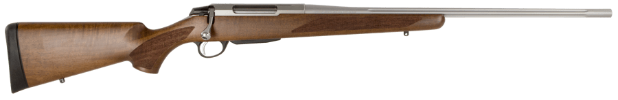 The Tikka T3x Hunter is designed for the shooter who appreciates the warm feel of a wooden stock combined with solid performance. The T3x Hunter offers an extensive caliber selection for hunting and sportshooting purposes. It is built with traditional principles and modern innovation providing you with a new level of accuracy reliability and enjoyment. This model features a fluted stainless steel barrel.