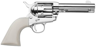 The Traditions Frontier 1873 provides a stylish revolver with great performance and accuracy. It comes chambered in .45 Colt with a 4.75 inch barrel. Features include a blade front sight, white grips, and a 6 round capacity. Get this 45 Long Colt revolver for the best price online from GrabAGun today!Frontier 1873 Features The Frontier series showcases all our top quality features and finishes. These 1873 revolvers are truly shooting works of art. Its transfer bar safety system provides the highest level of safety offered in an 1873 single action firearm. All models have steel frames and are authentic reproductions. Frontier 1873 Specifications Brand: Traditions Category: Revolvers Series: Froniter Caliber: 45 Colt (LC) Model: 1873 Capacity: 6rd Action: SAO Sights: Blade Front Barrel Finish: Nickel Grips: White PVC Cylinder Material: Steel Cylinder Finish: Nickel Safety: Transfer Bar Barrel Length: 4.75″ Max Capacity: 6 Frame Description: Nickel Steel Hammer Style: Exposed