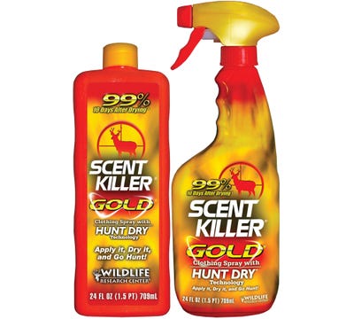 The Wildlife Research Scent Killer Gold Combo offers an effective hunting spray. This 24 oz trigger spray protects against odors, is eco-friendly, and lasts up to 10 days. Get the best hunting accessories for sale online from GrabAGun today!Scent Killer Gold Combo Features Wildlife’s Scent Killer Gold Spray Combo with Hunt Dry Technology Plus works both wet and dry. Specialized blend of advanced odor fighting ingredients, attacks a wide range of odors – most importantly human odor. It is scientifically formulated to last longer and is 99% effective at stopping replicated human odor, 20 days after drying. This high-output sprayer will spray upside down. Combo- 24oz refiller bottle and 24 oz filled bottle. Scent Killer Gold Combo Specifications Brand: Wildlife Research Category: Hunting Scents Series: Combo Model: Scent Killer Gold Size: 24 oz Effective Time: Up to 10 Days Protects: Against Odors Scented: Odorless Dispenser Type: Trigger Spray Includes: 24 oz Refiller Bottle Eco-Friendly: Yes