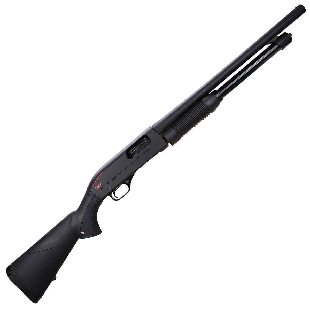 Winchester SXP Defender Pump Shotgun – Fit for everything from competition shooting to home defense, this is an all-in-one shotgun. Built to make shooting easy, it features non-glare metal surfaces to ensure you can always keep your eye on the target, a forearm that’s textured with grooves to help keep your grip and aim steady, and a stock made of a durable synthetic to keep your gun in excellent shape for years to come. Whether you’re shooting buckshot or rifled slugs, this six-shell capacity shotgun can handle anything you throw at it. With a rotary bolt that makes take-down and cleaning easier, and an inertia-assisted action that helps speed up the ejection of spent shells and allows you to quickly re-aim, this will be the most efficient and user friendly shotgun in your collection. You can also customize it any way you like, with the pre-drilled receiver that’s ready for your choice of sight mounts and rails. Synthetic stock with textured gripping surfaces Ribbed forearm Hard chrome-plated chamber and bore Fixed cylinder choke Rotary bolt Black chrome bolt