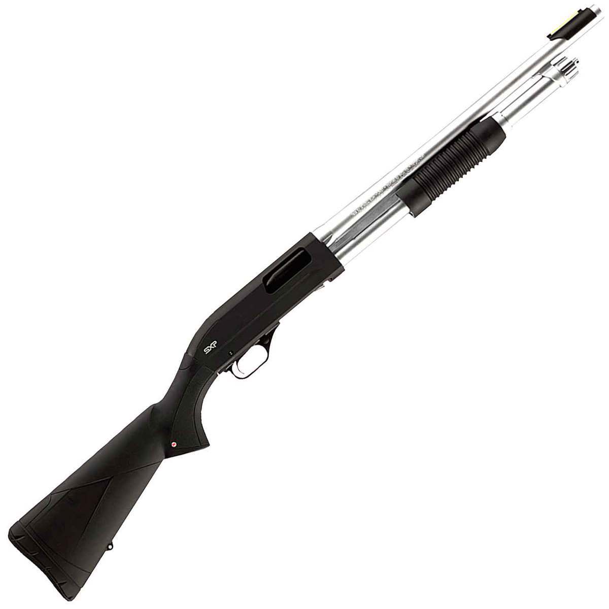 Winchester SXP Marine Defender Matte Black/Chrome 12 Gauge 3in Pump Action Shotgun – 18in – Neither snow nor rain nor heat nor gloom. The Super X Pump Marine Defender is built to resist the roughest weather on your boat, at your cabin or in your camp. Whether it’s multi-gun competition or protecting your home and family, the Marine Defender is a perfect choice. This model is a 12 gauge with an 18in barrel and a Matte Black Receiver finish. Hard chrome placted barrel Magazine tube and other componnets TRUGLO front sight Ribbed forearm