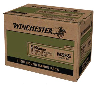 Winchester USA Green Tip provides exceptional performance and accuracy in a consistent and reliable load. Each case contains 1000 rounds of 55 grain 5.56 Ammo with full metal jacket projectiles and brass casings. Buy your 5.56 ammo and bulk ammo for sale online from GrabAGun today!USA Centerfire Rifle 5.56 Ammo Features This case (1 box) holds 1000 rounds USA Centerfire Rifle Rounds from Winchester. Each round weighs 62 Gr. USA Centerfire Rifle 5.56 Ammo Specifications Brand: Winchester 556 Ammo Category: Centerfire Rifle Rounds Caliber: 5.56x45mm NATO Model: USA Bullet Weight: 62 gr Rounds Per Box: 1000 Boxes Per Case: 1 Casing Material: Brass Bullet Type: Full Metal Jacket Lead Core (FMJLC)