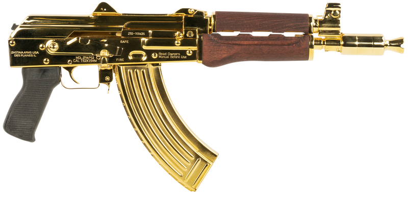 Beautiful Serbian made AK-47 semi-auto pistol in 7.62 x 39 caliber. The Zastava ZPAP92 is loaded with features such as a dimpled receiver, hinged top cover with picatinny rail, chrome bolt, krink-style rear sight, dual aperture front sight, quad-rail forend, and a bolt hold-open notch on the safety selector. Rear mounted picatinny rail to mount your preferred brace.This tactical edition pistol also features the Zastava famous and really cool night brake, which can be unthreaded to reveal the original 14×1 left-hand thread. Picatinny Stock Adapter, dark wood handgaurd, Picatinny Optics Rail.